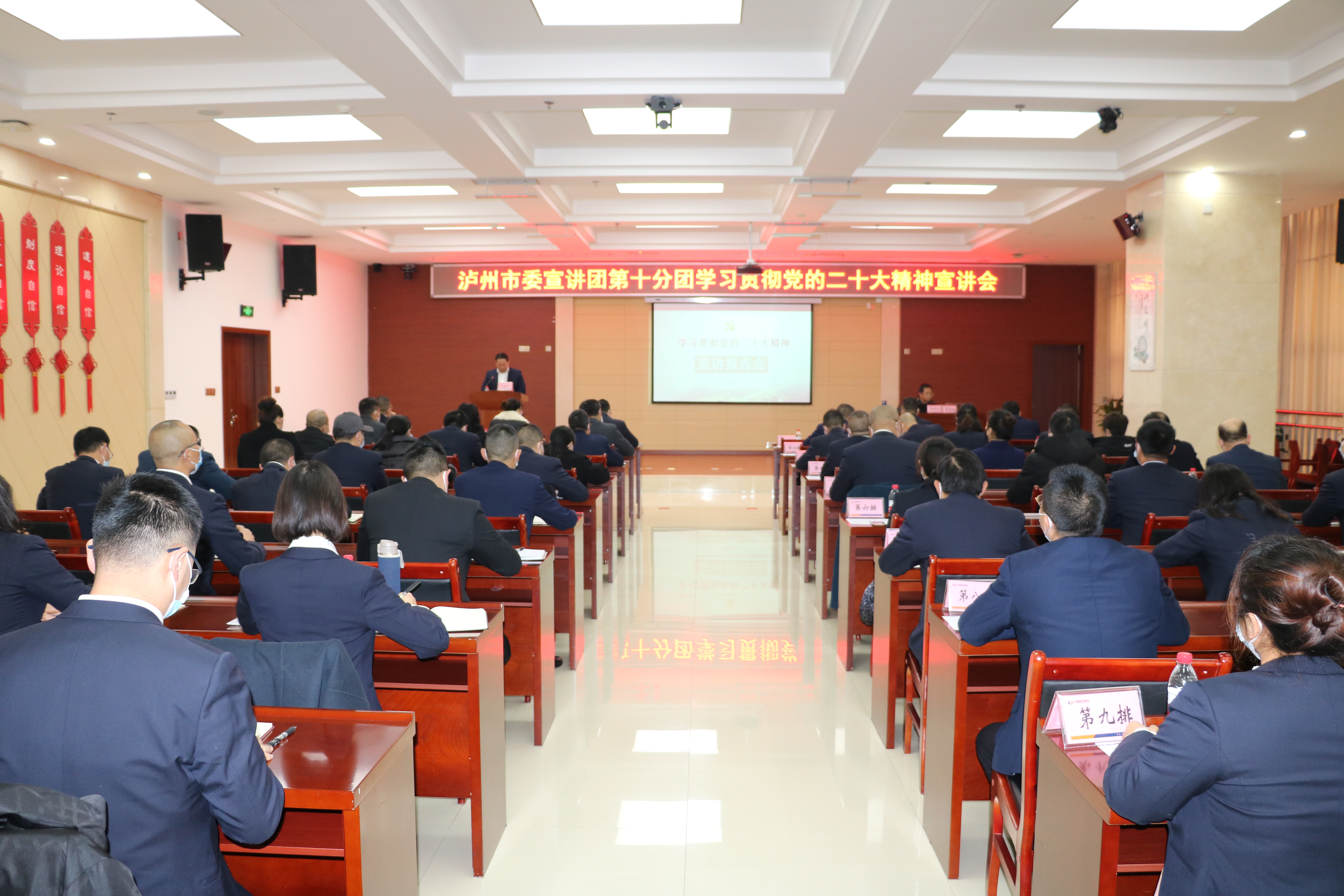 宣講會上,曾慶雙教授圍繞黨的二十大召開的重大意義、主要議程和需要深刻把握的七個(gè)方面內(nèi)容,全面深入闡釋了黨的二十大精神,并就如何堅(jiān)定推動黨的二十大決策部署在瀘州落地生根進(jìn)行深入講解。城投集團(tuán)員工深受鼓舞、倍感振奮,紛紛表示對未來發(fā)展充滿信心和力量。