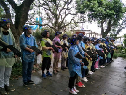 最后進行了真人CS實戰(zhàn)演練,活動開始前,野戰(zhàn)專業(yè)教官對大家進行了戰(zhàn)前總動員,介紹了野戰(zhàn)操作規(guī)程、動作要領(lǐng)以及激光槍使用知識,對參與隊員分組,采取紅藍(lán)雙方分組對抗形式,設(shè)置了種種情景?;顒又?,大家熱情融入自己的團隊,全副武裝,迅速尋找隱蔽點。場地內(nèi)槍聲四起、氣氛熱烈、精彩連連。