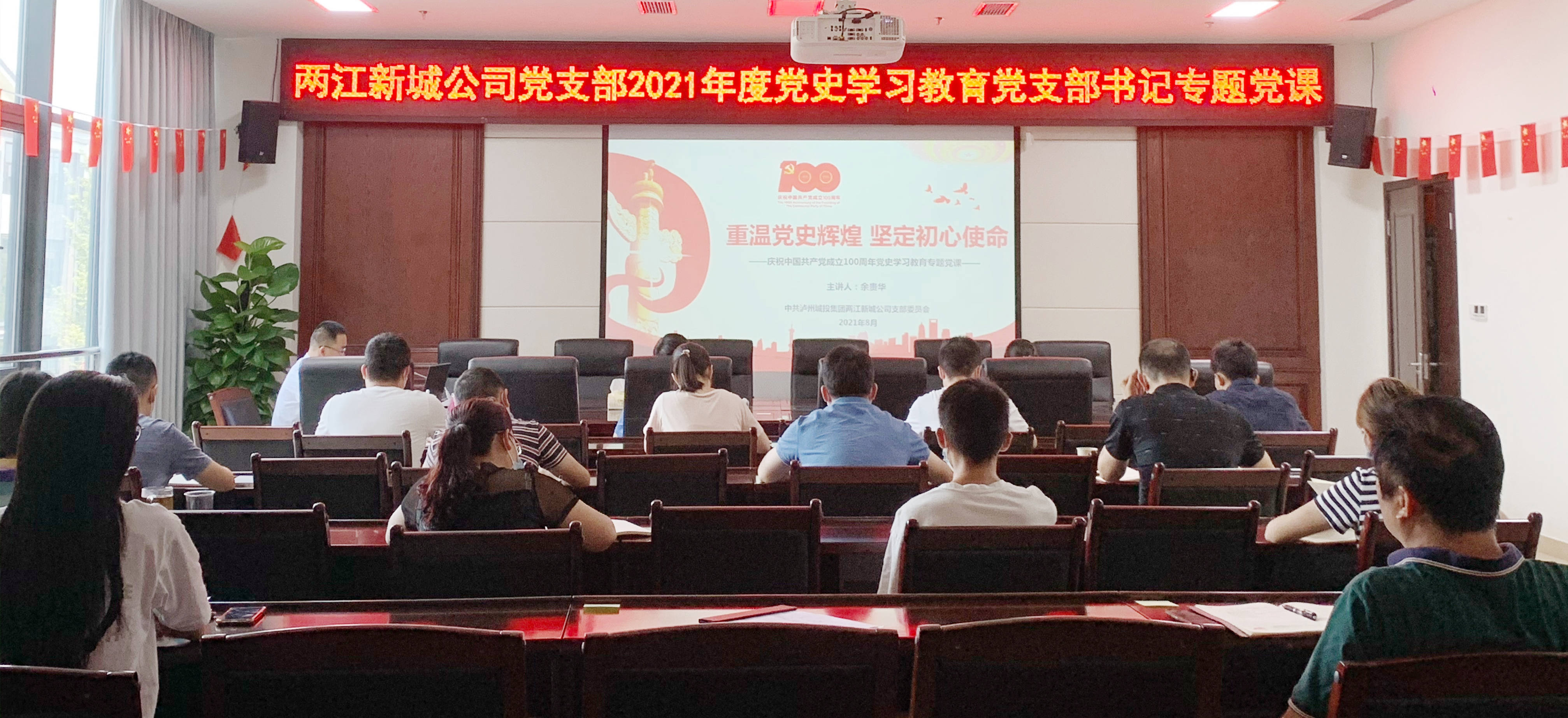 8月6日,兩江新城公司黨支部書記余貴華以《重溫黨史輝煌 堅(jiān)定初心使命》為題講授黨史學(xué)習(xí)教育專題黨課。此次黨課學(xué)習(xí)嚴(yán)格落實(shí)防疫工作要求,與會(huì)人員佩戴口罩間隔一米落座。
