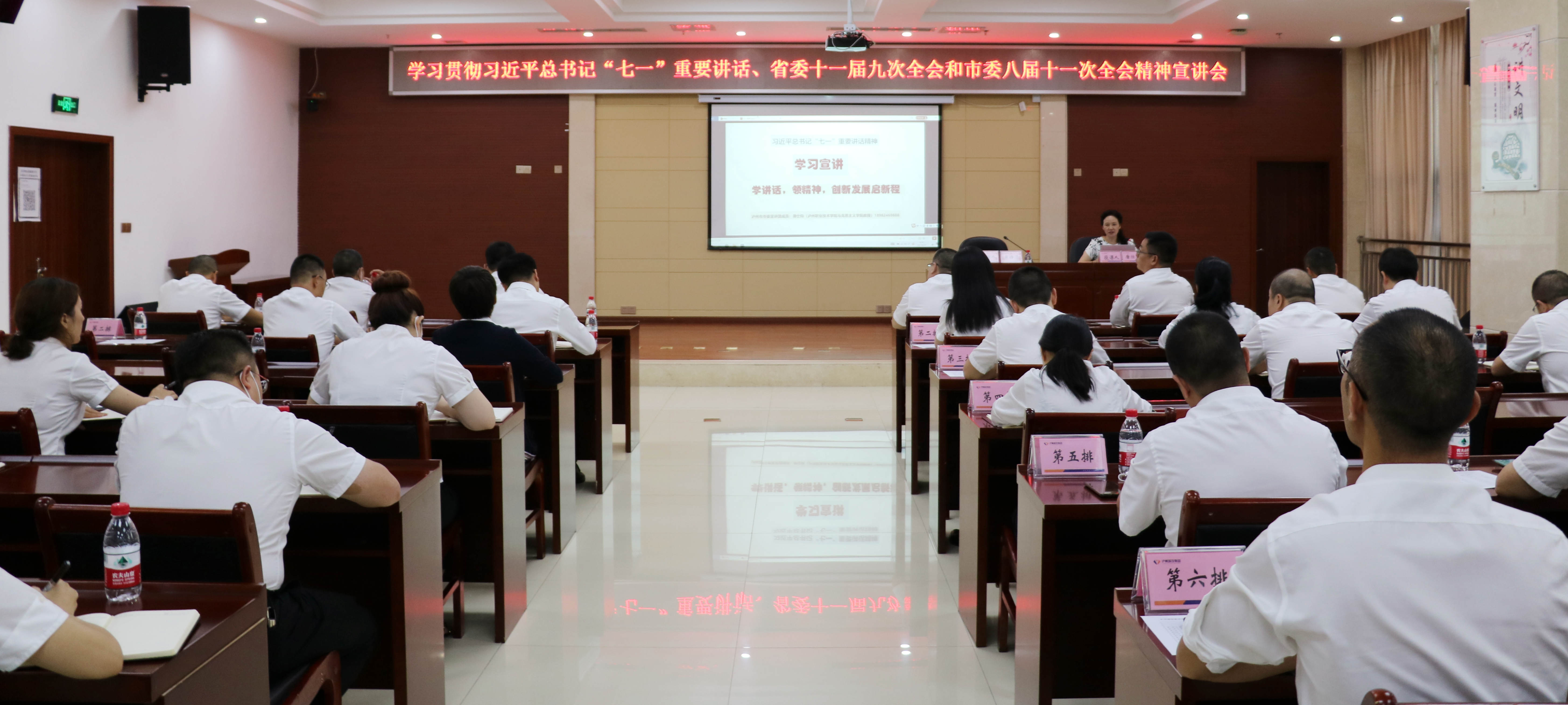8月27日,瀘州城投集團舉行學習貫徹習近平總書記“七一”重要講話、省委十一屆九次全會和市委八屆十一次全會精神宣講會,集團在家領導班子,各部門、各子公司負責人及部分黨員、職工代表80余人參會。