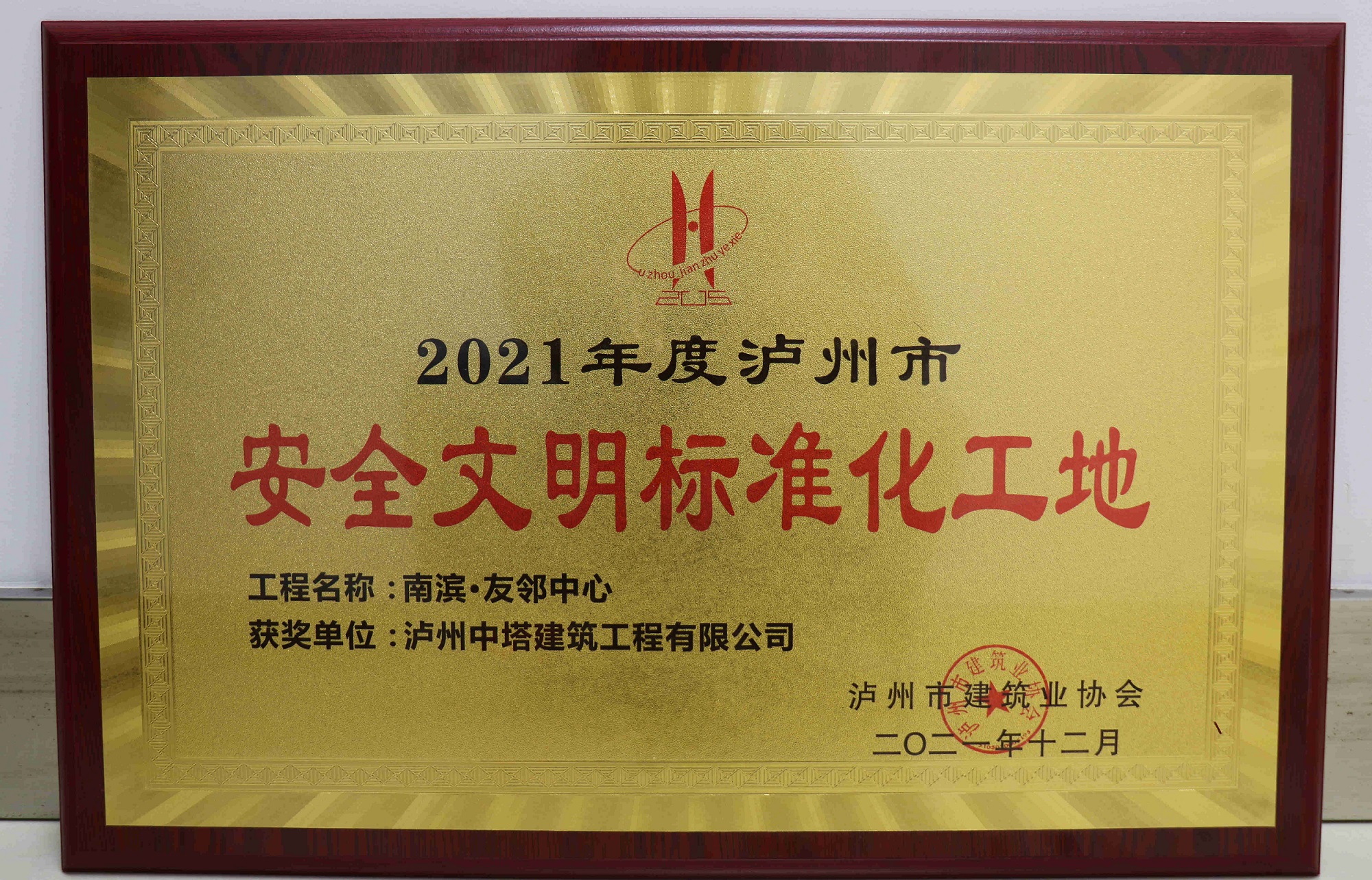 近日,南濱·友鄰中心建設項目榮獲瀘州市建筑業(yè)協(xié)會頒發(fā)的“2021年度瀘州市安全文明標化工地”稱號。
