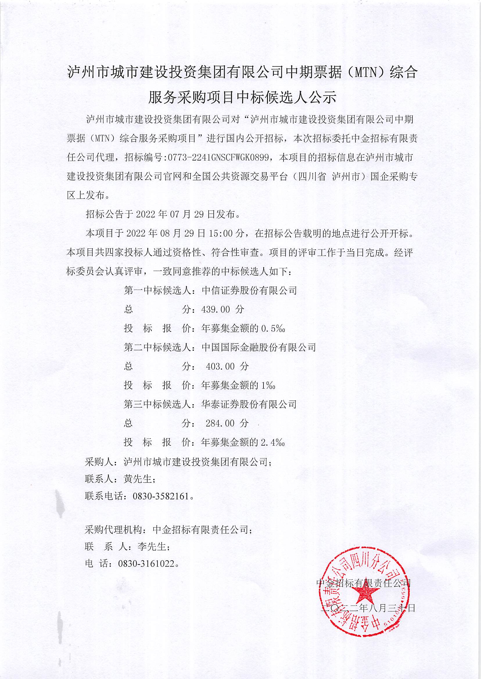中期票據(jù)(MTN)綜合服務(wù)采購(gòu)項(xiàng)目中標(biāo)候選人公示