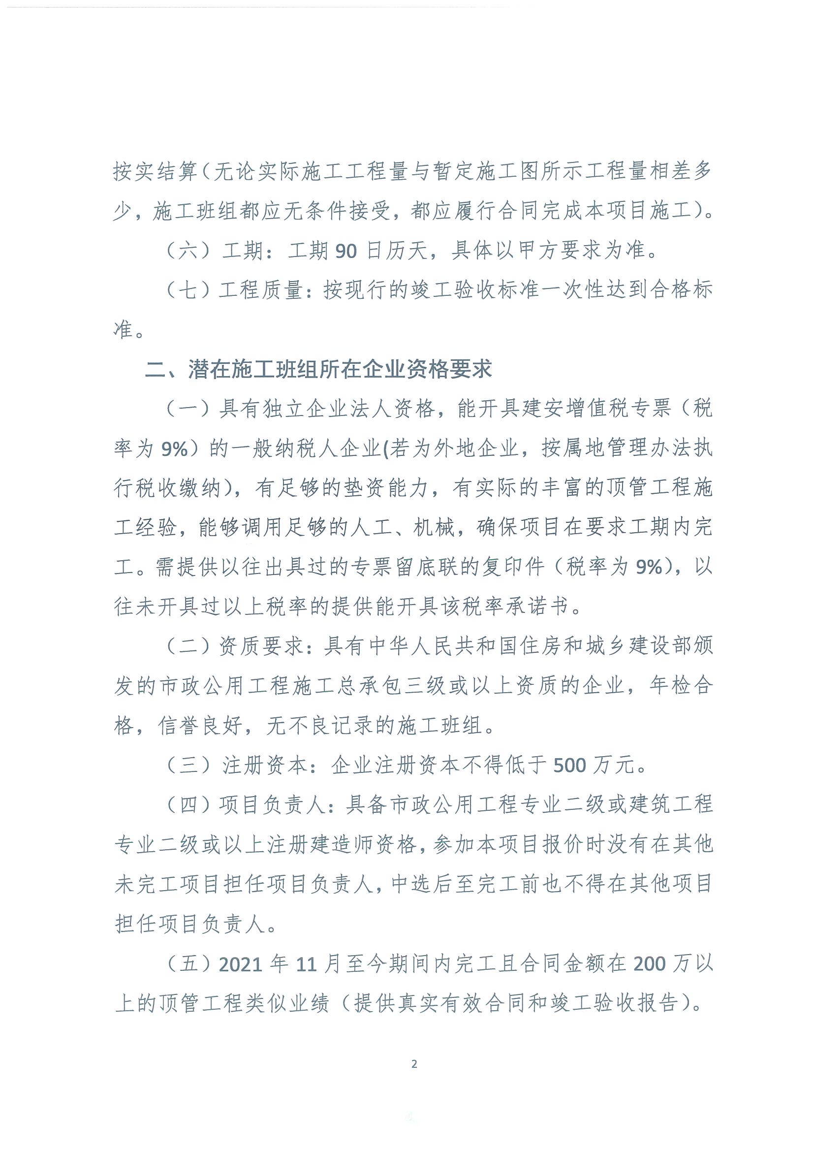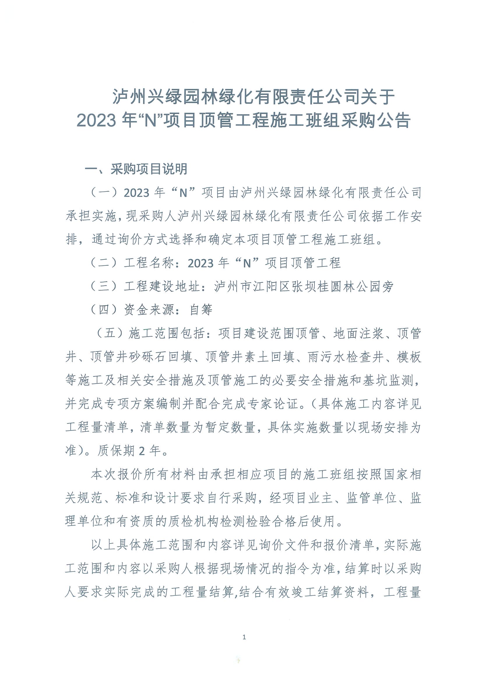 2023年“N”項目頂管工程施工班組采購公告