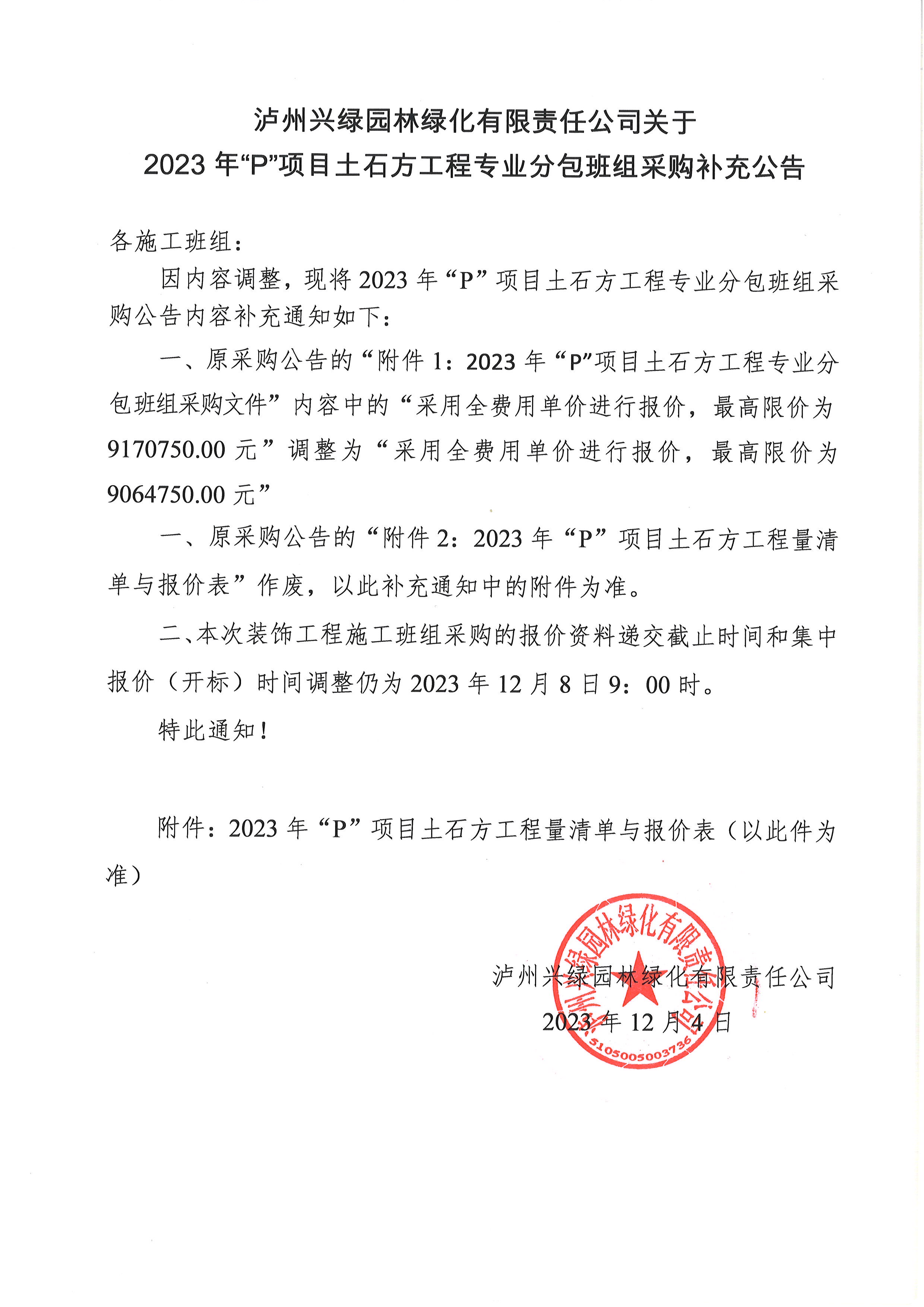 2023年“P”項(xiàng)目土石方工程專業(yè)分包班組采購(gòu)補(bǔ)充公告