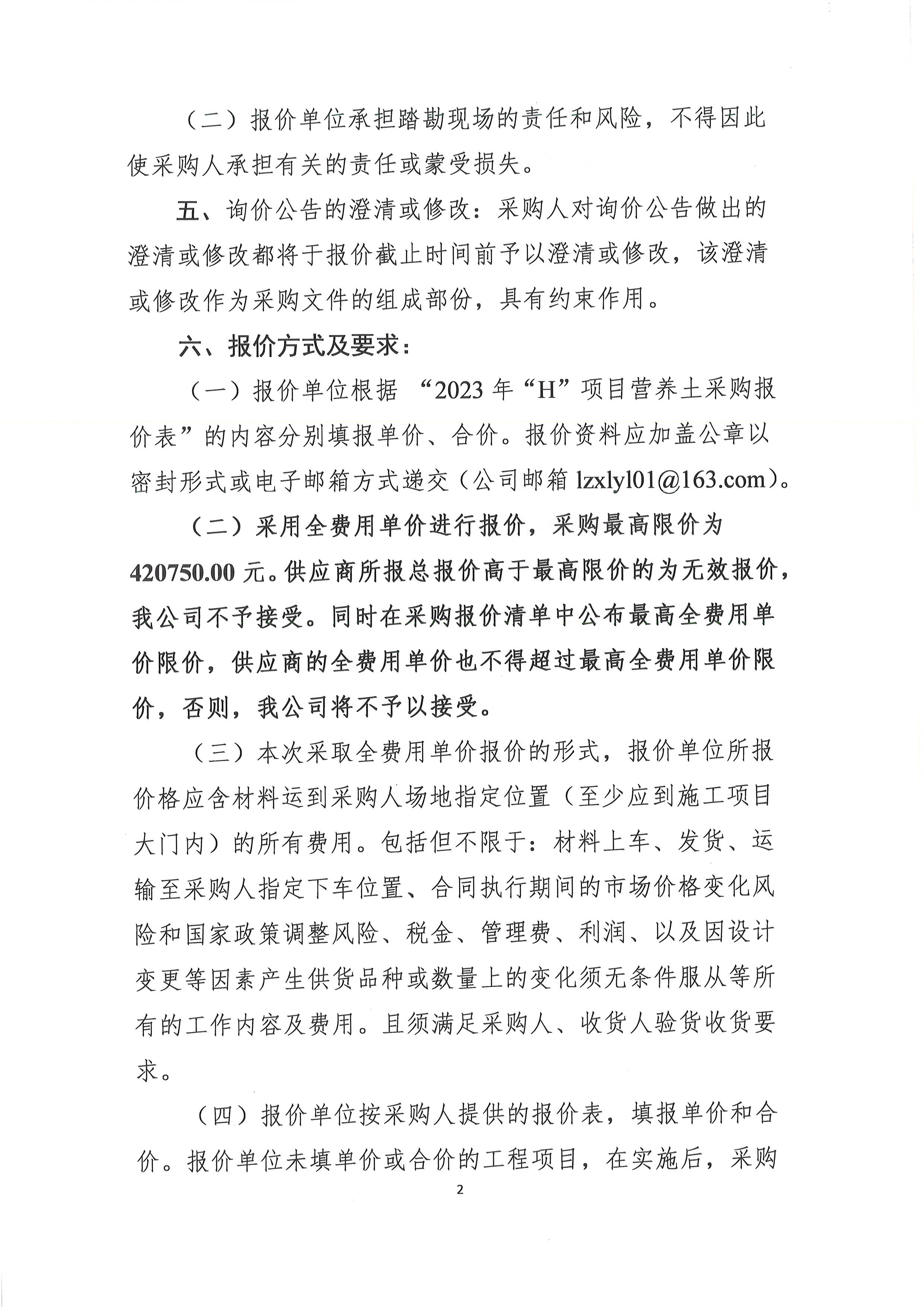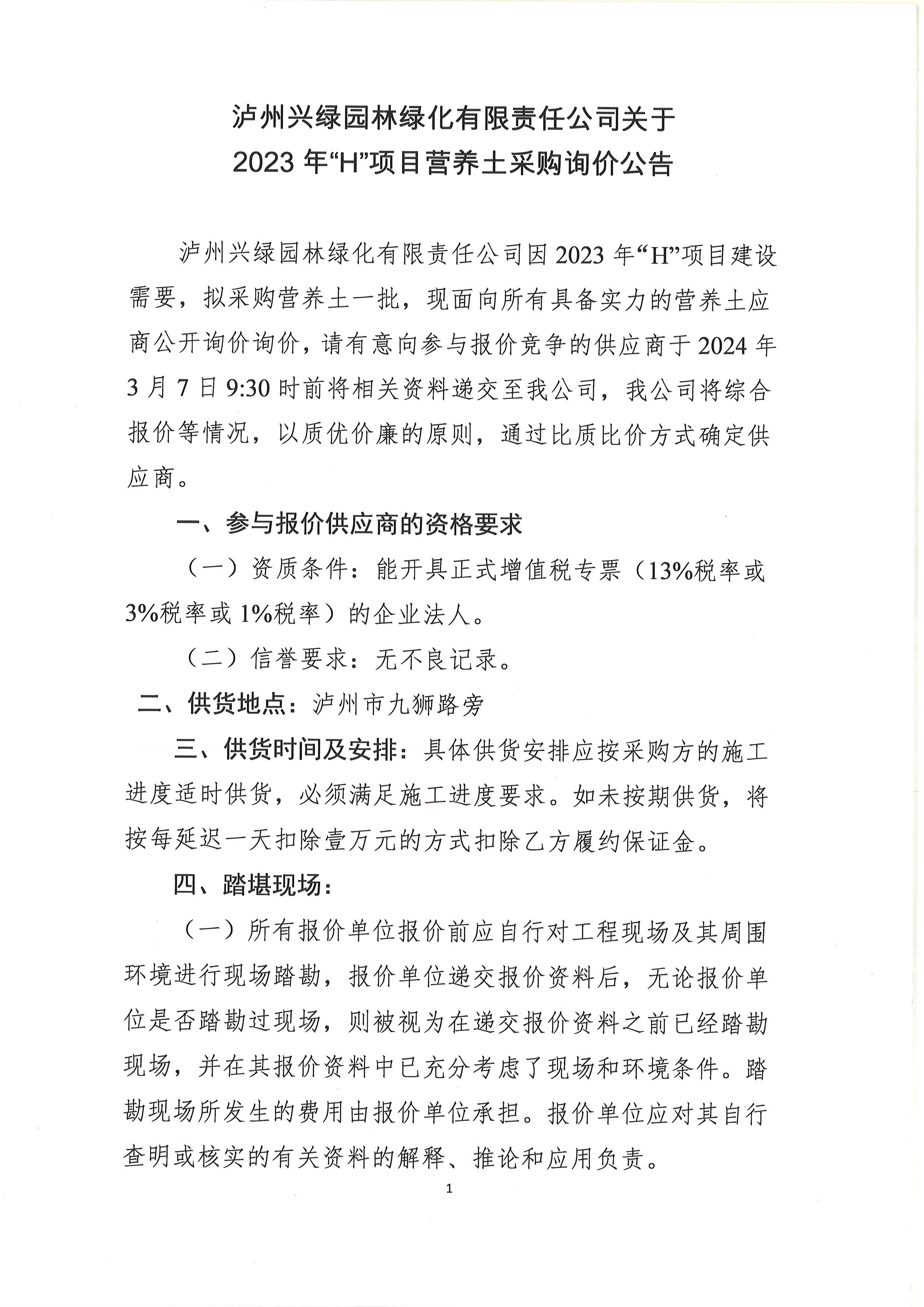 2023年“H”項目采購營養(yǎng)土詢價公告