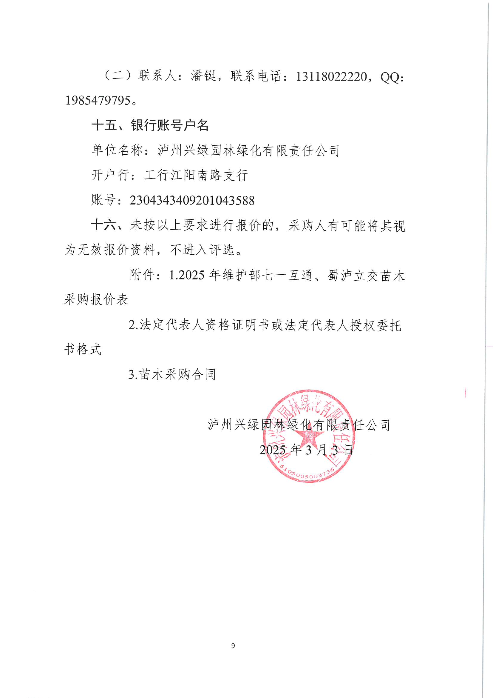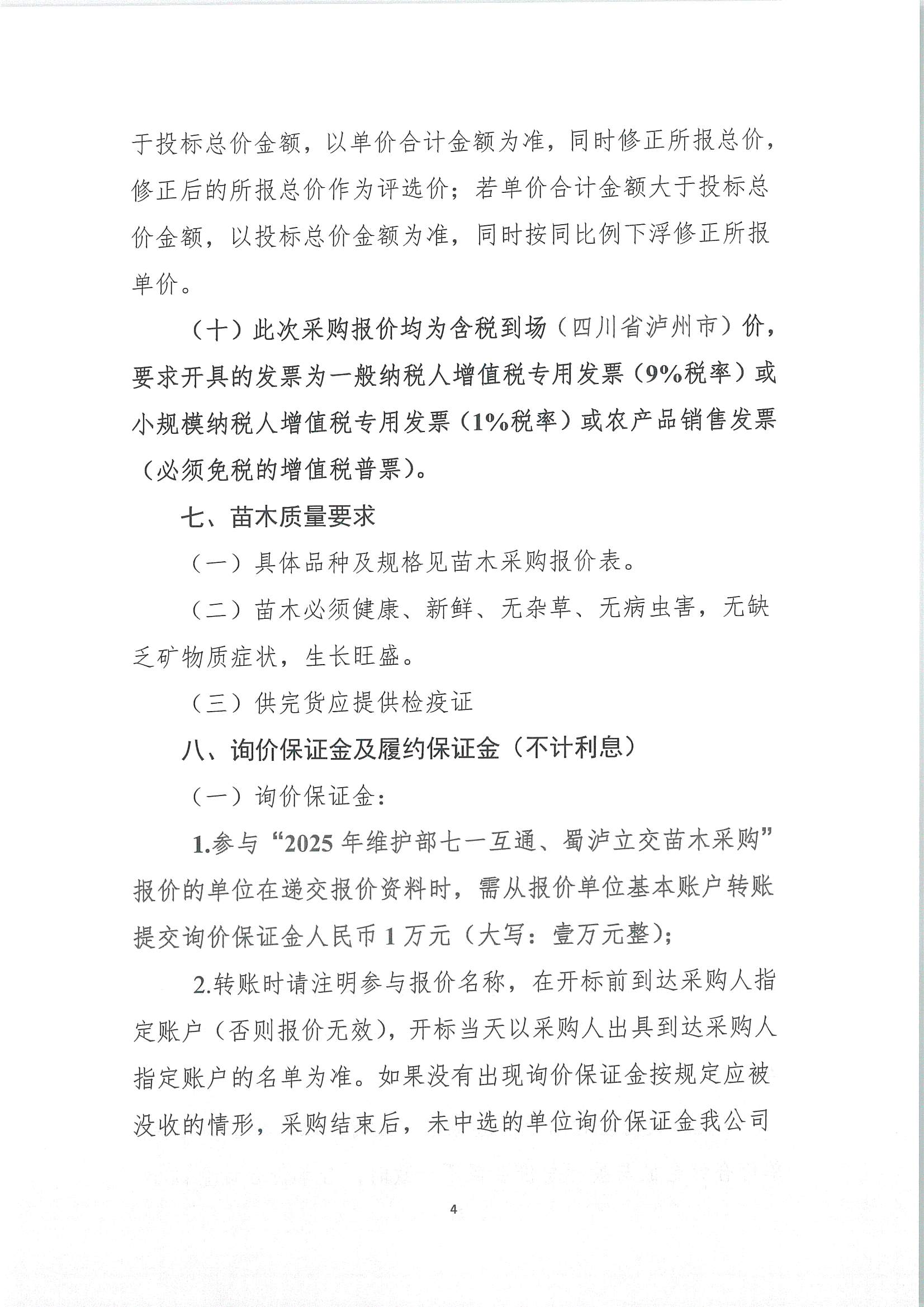 瀘州興綠園林綠化有限責(zé)任公司關(guān)于2025年維護(hù)部七一互通、蜀瀘立交苗木采購詢價(jià)文件