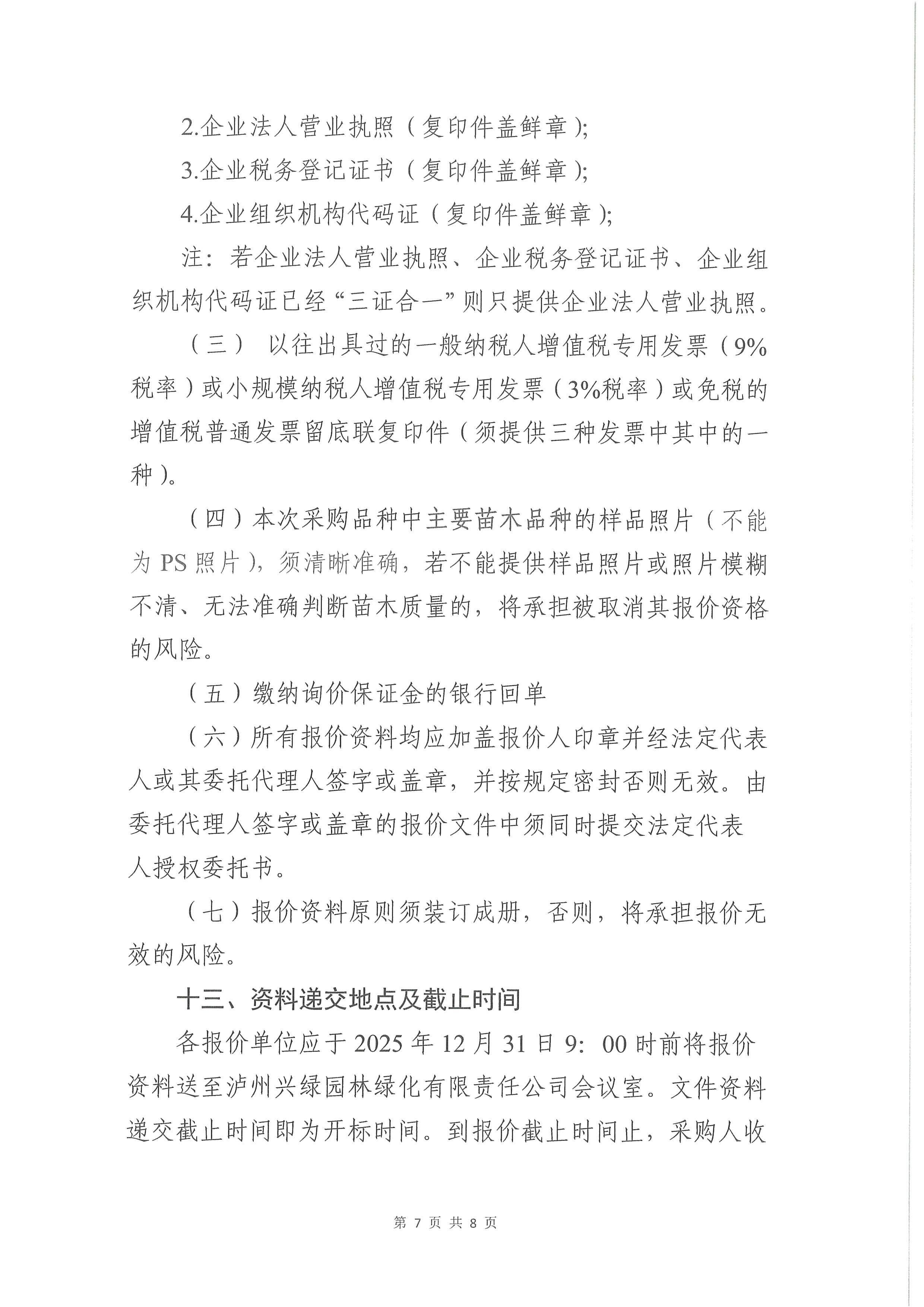 瀘州興綠園林綠化有限責(zé)任公司關(guān)于2025年“E”項目苗木采購詢價文件